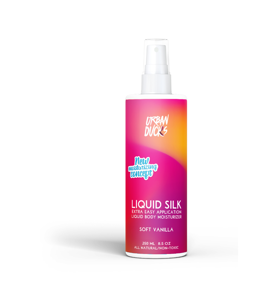 Liquid Silk is a moisturizing spray that absorbs in seconds, leaving your skin hydrated and shiny.