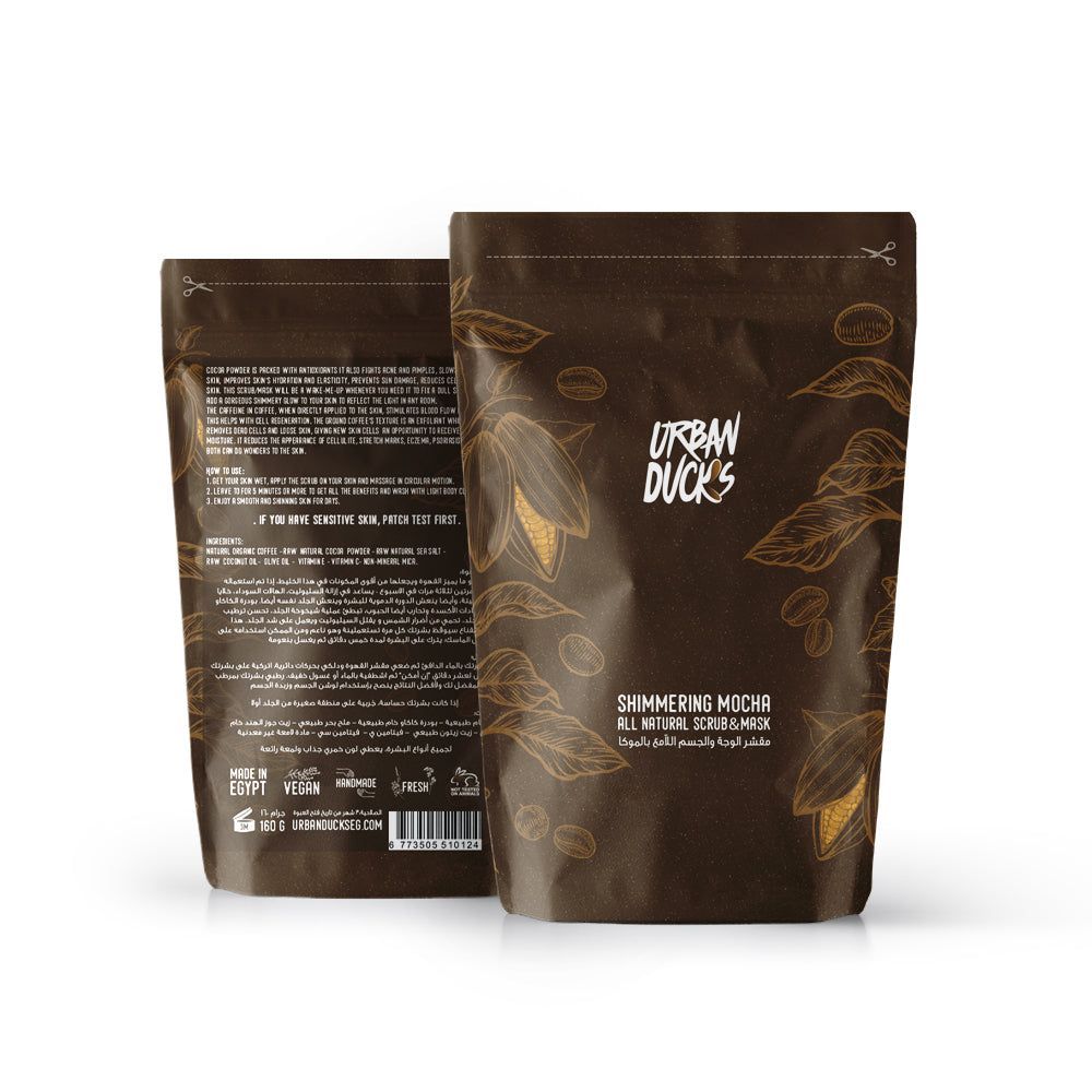مقشر القهوة والموكا الجديد المكون من السكر البني، حبوب القهوة والكاكاو الخام المطحونة والزيوت الغنية مع الحبوب اللامعة الأنيقة سيساعدك على التخلص من الجلد الميت و يضمن لك الحصول على تلك اللمعة الصحية، بالإضافة إلى تخفيف الالتهابات و تحسين الدورة الدموية و تقليل مظهر السيلوليت وعلامات التمدد